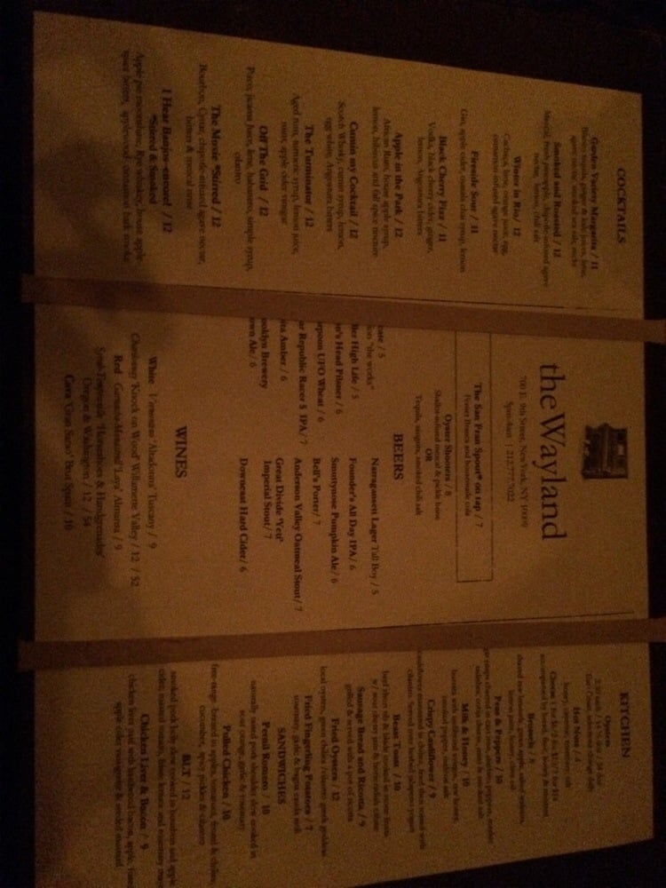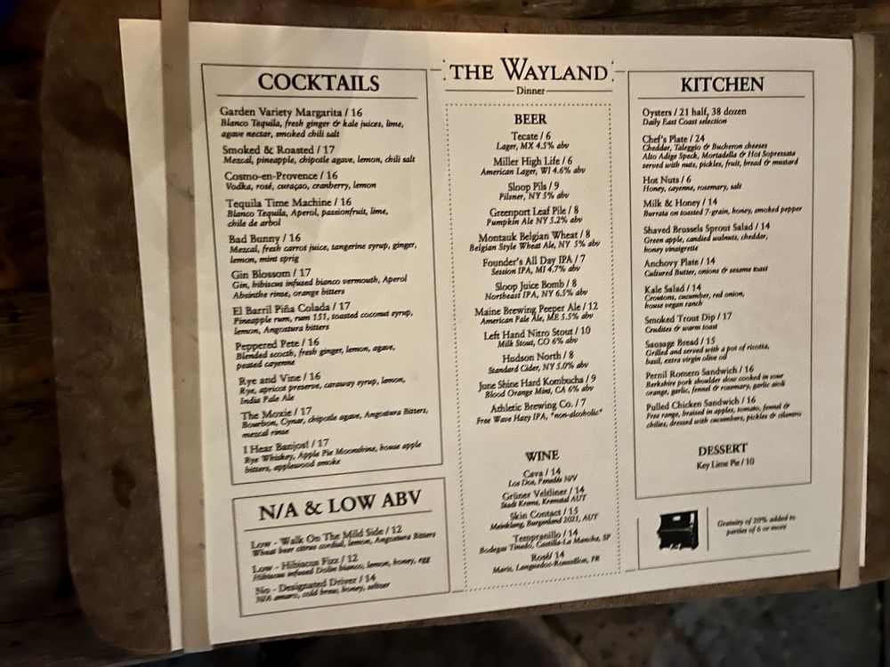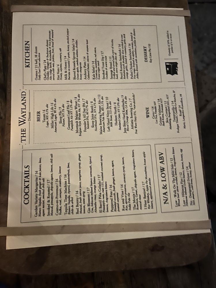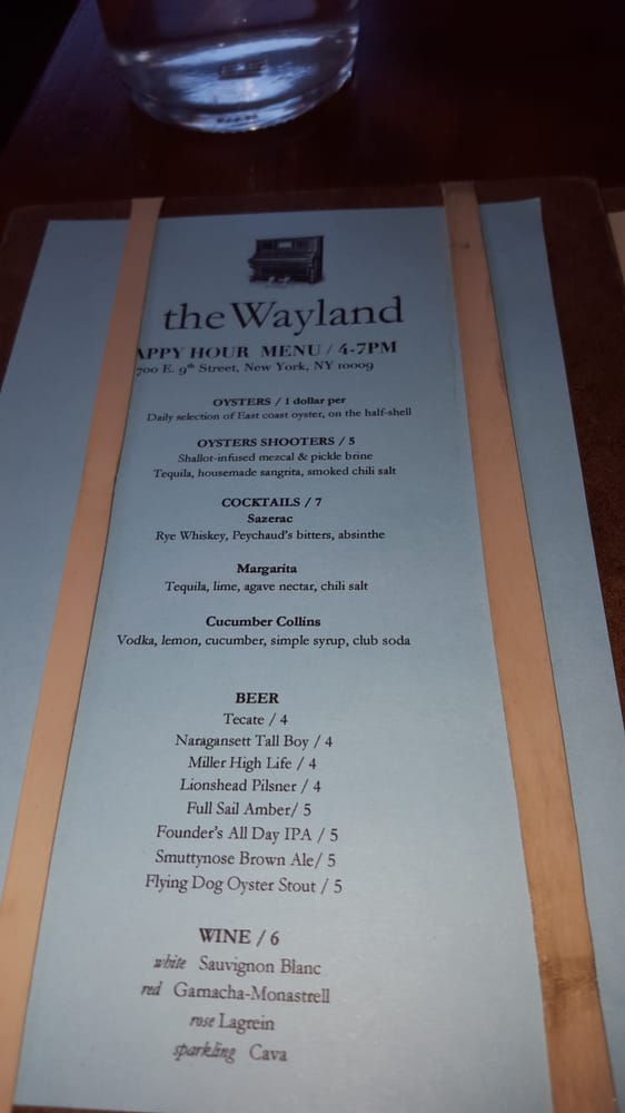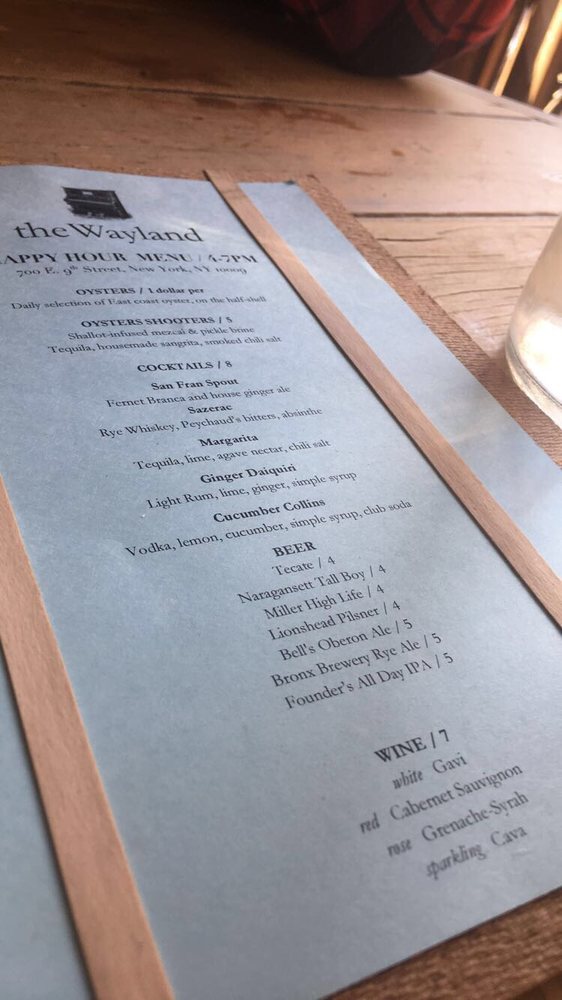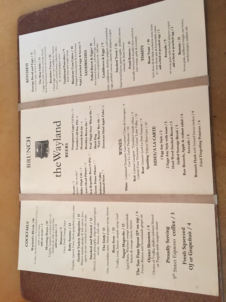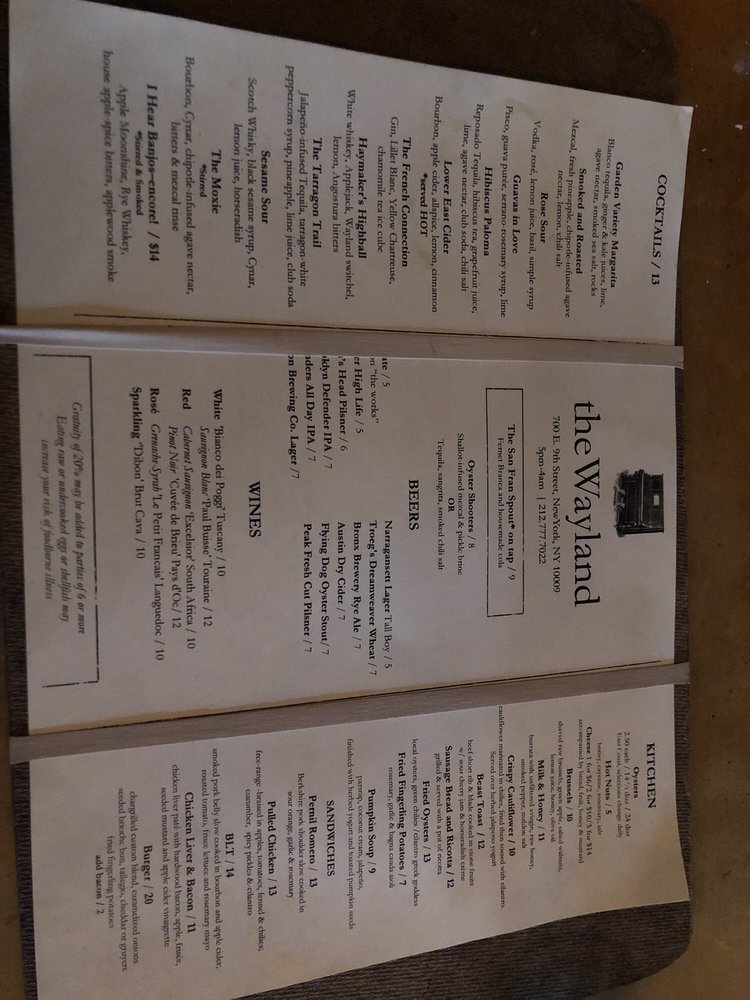 Introducing the menu at The Wayland, a versatile music venue and cocktail bar in New York's East Village, offers a unique blend of American cuisine with a focus on pescatarian and vegetarian options. The cocktail menu is particularly innovative, with standout drinks like the Moxie cocktail and the Ginger Gimlet impressing patrons. Customer reviews rave about the cozy atmosphere, live music, and exceptional service provided by the friendly staff. The food menu features creative sandwiches, grilled bread dishes, and a variety of delectable options for all tastes. Signature dishes like the sausage toast with burrata cheese and the pulled chicken sandwich receive high praise from customers. The Wayland is known for its chill vibe, making it a popular spot for happy hours and gatherings with friends. With its welcoming ambiance, diverse menu, and exceptional drinks, The Wayland stands out as a must-visit destination in the vibrant East Village neighborhood.